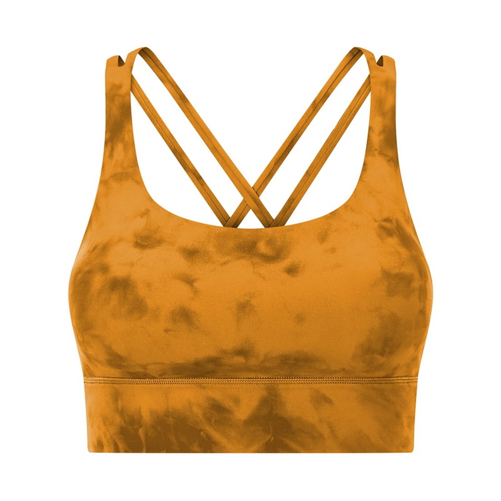 Tie Dye Naked Feel Women Sports Bra Cross Back Padded Sports Bra With Removable Cups Workout Running Yoga Unique Cross Back Strap For Gym Color Dye In Orange Size X Large